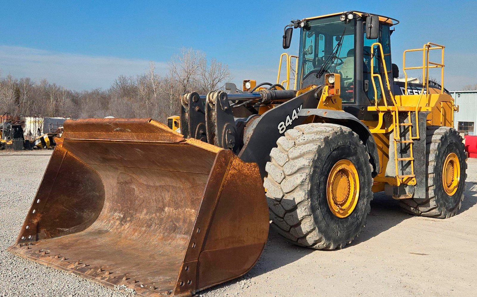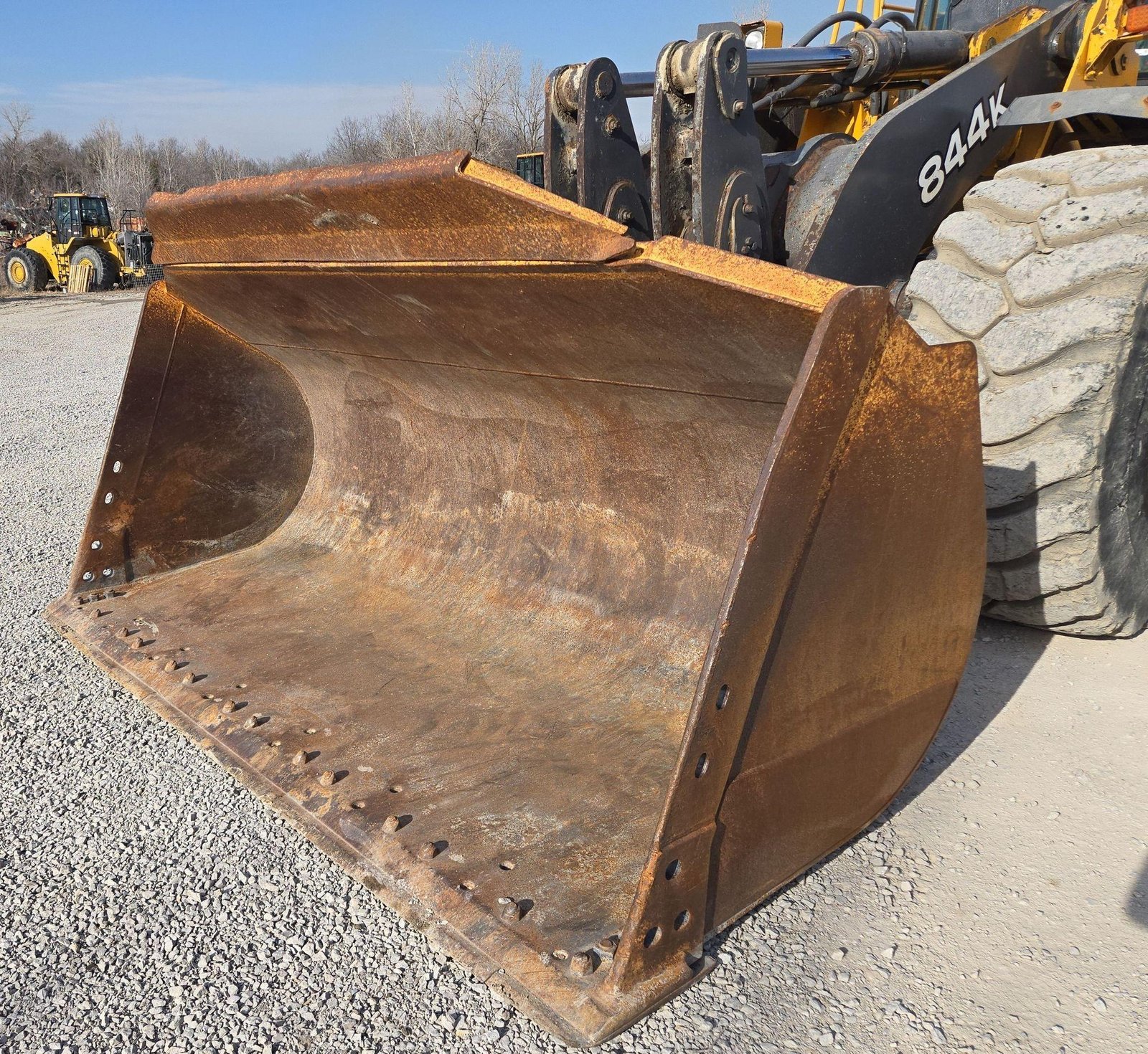 2012 John Deere 844K Wheel Loader — 13.5L JD diesel, powershift 4F/4R, 136″ bucket with bolt-on cutting edge.