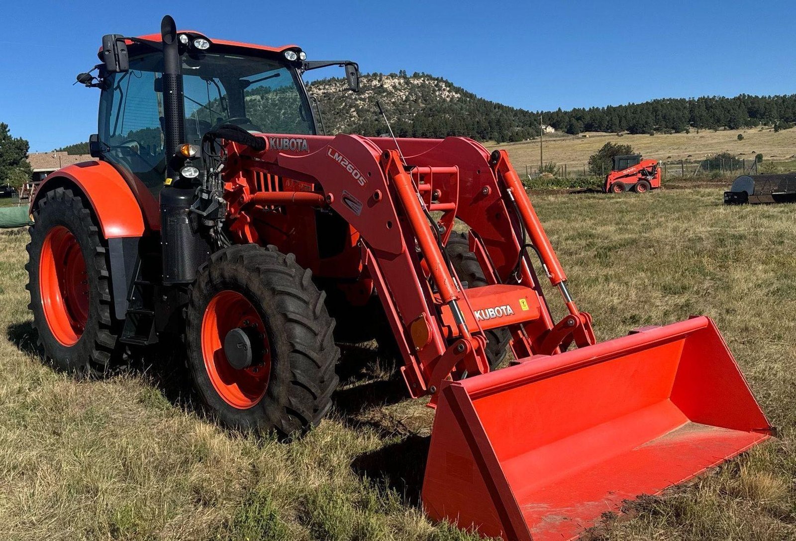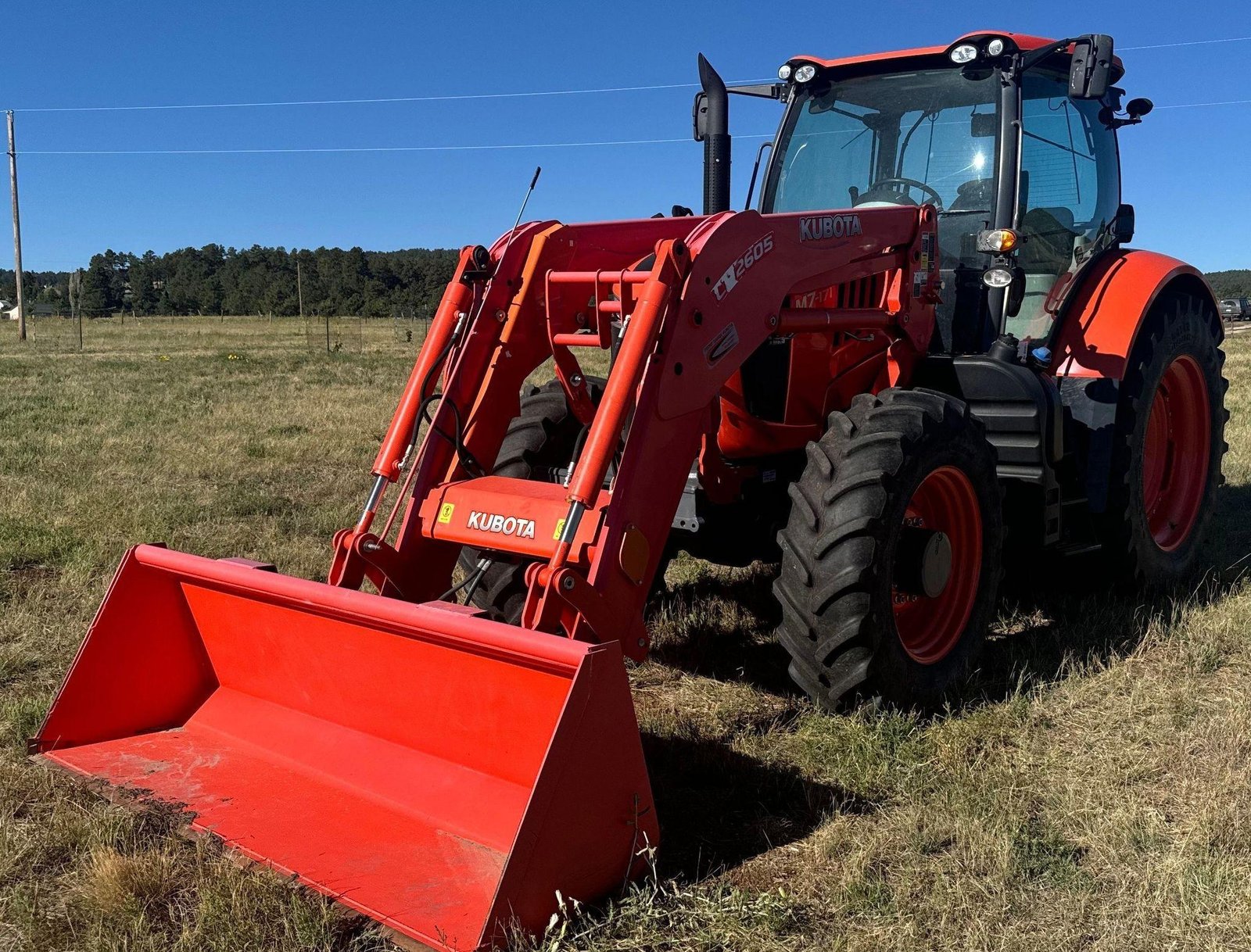 - Loader: Kubota LM2605, quick attach, self-leveling; joystick controls