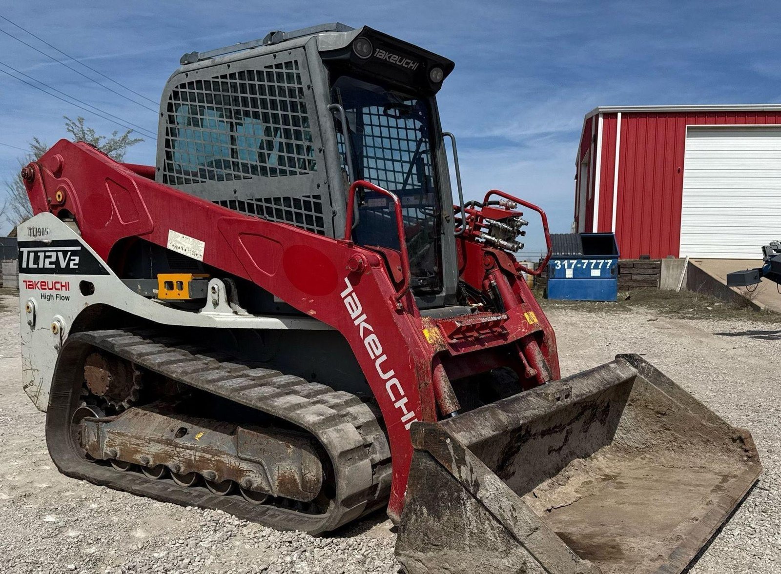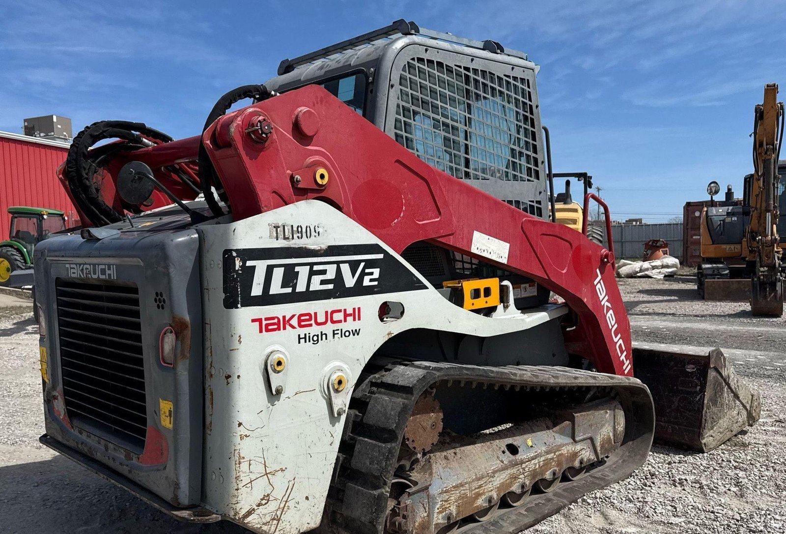 2019 Takeuchi TL12V-2 Tracked Skid Steer Loader — 3.8L Kubota diesel, two-speed, high-flow aux, manual coupler.