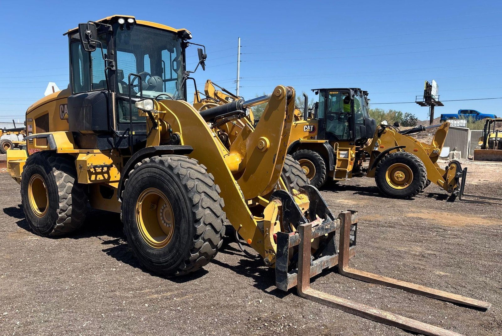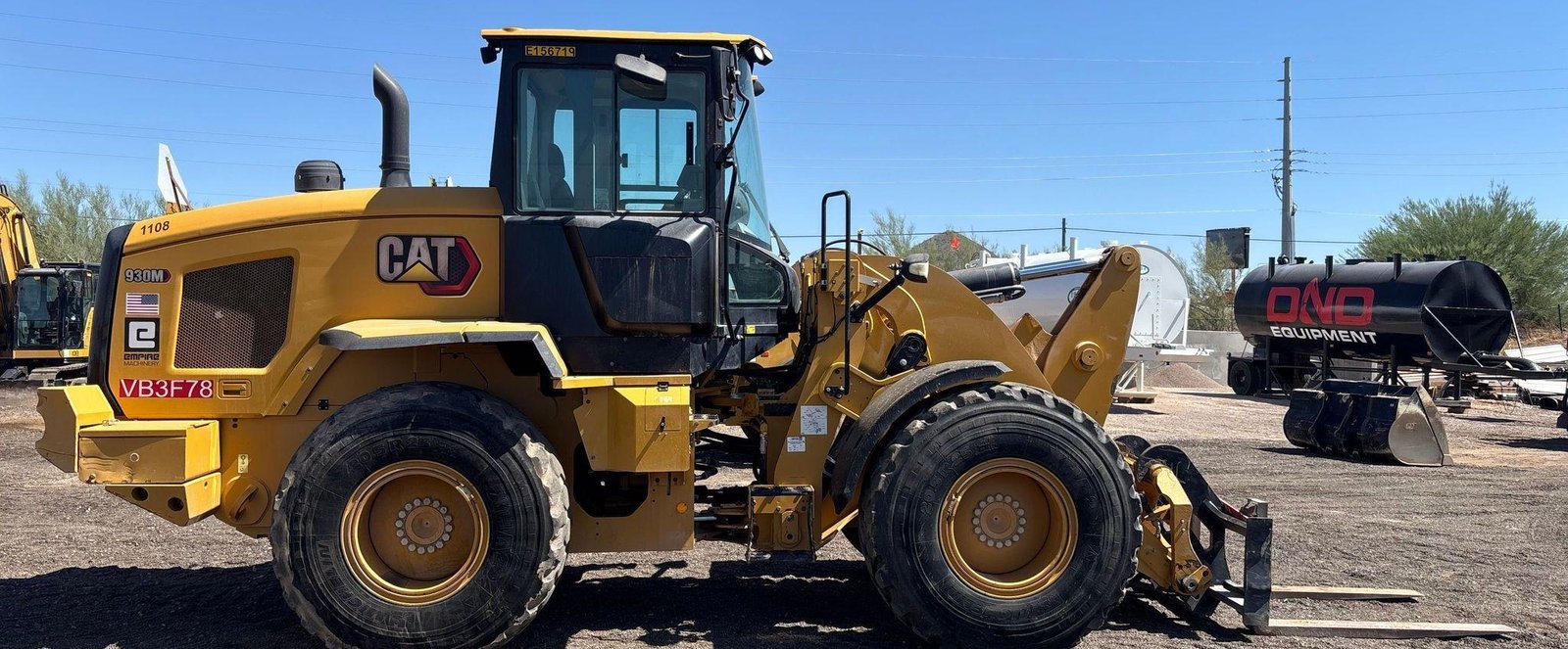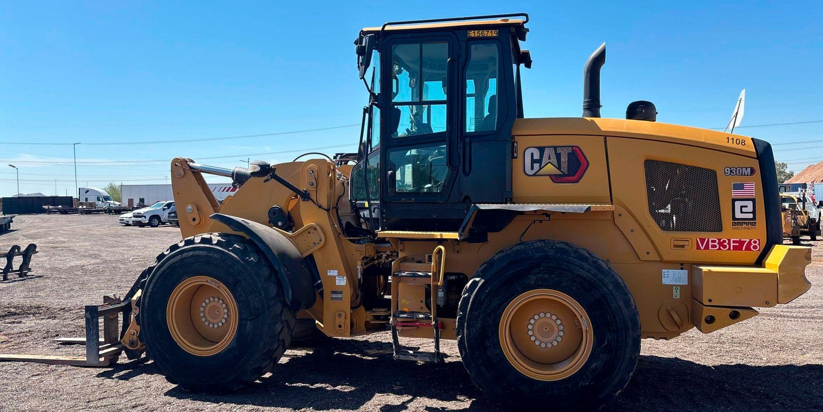 2020 Caterpillar 930M Wheel Loader — Cat C7.1 diesel, hydrostatic, hydraulic QC with bucket (teeth) and 60″ forks.