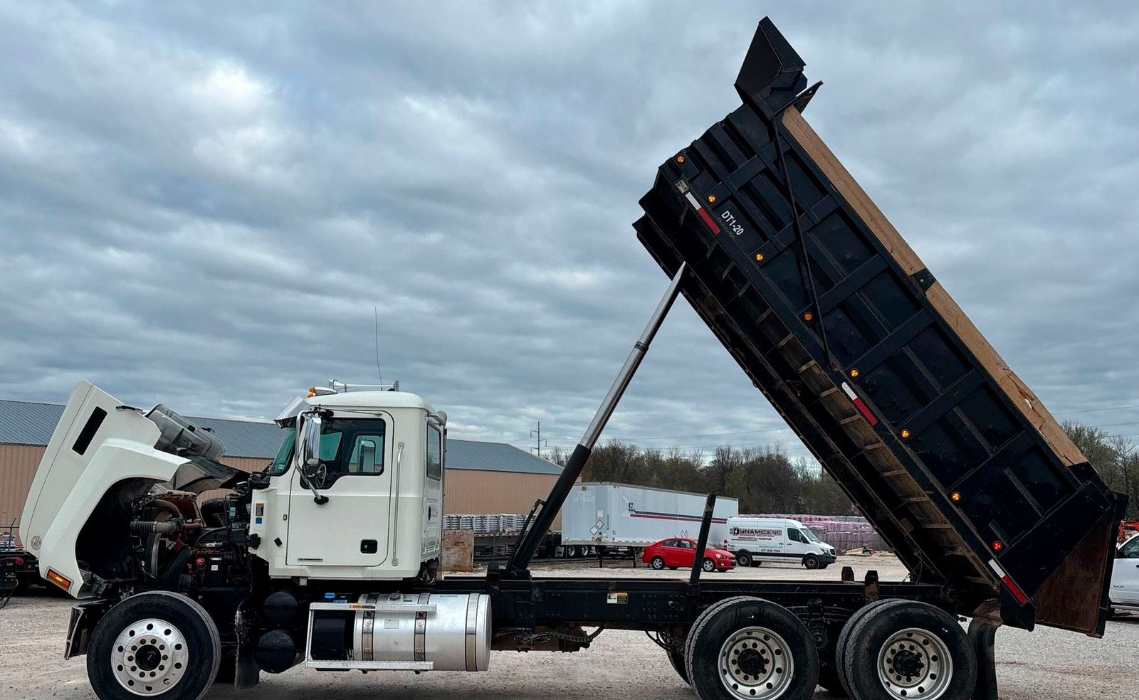 2020 Mack Pinnacle Dump Truck — MP8 diesel with mDRIVE automated manual, Herrera 16SQ steel dump body.