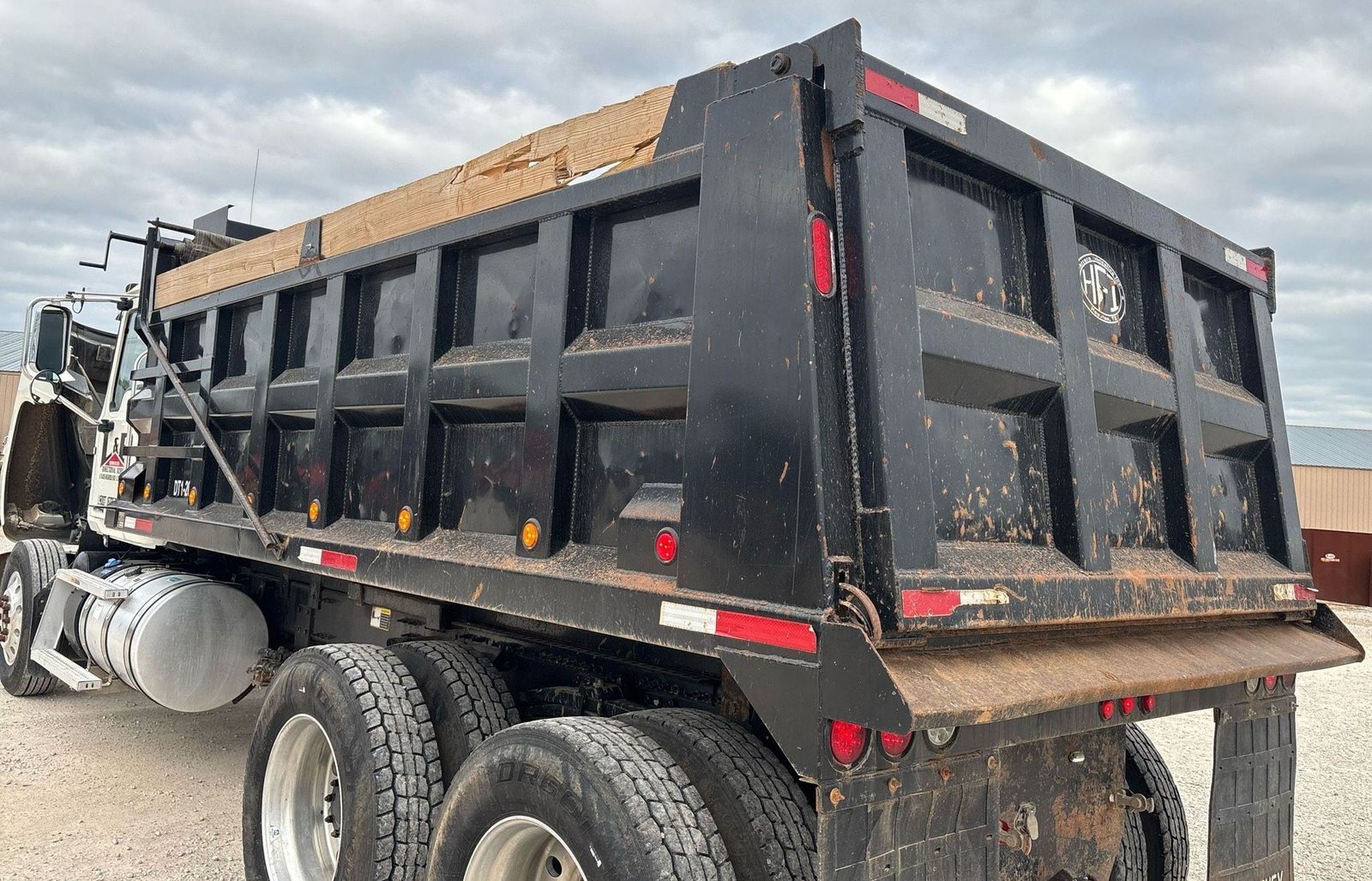 - Dump bed: Herrera 16SQ — 16′ L x 96″ W; 45″ sides + 8″ boards; steel; roll tarp; single ram; air-operated end gate