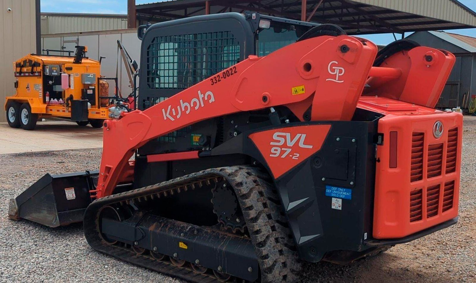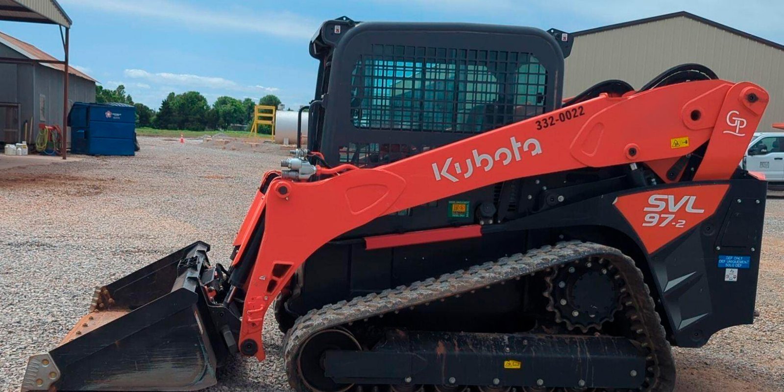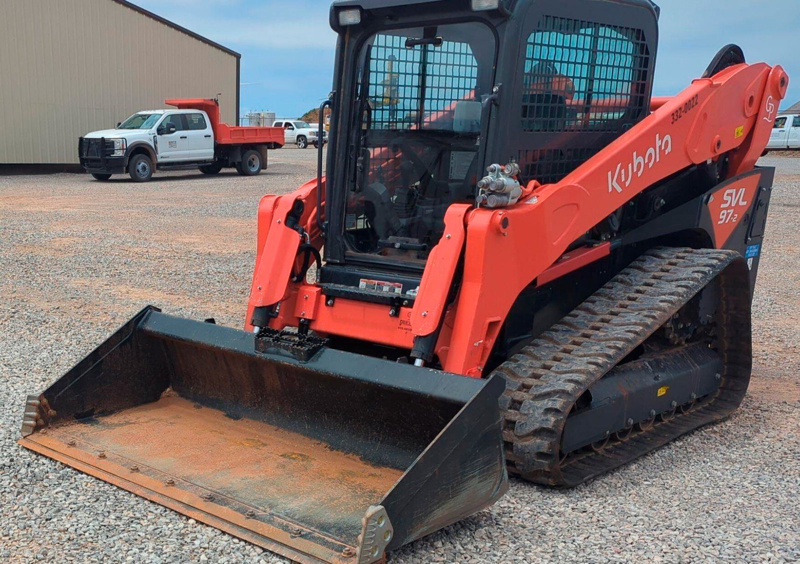 2022 Kubota SVL97-2 Tracked Skid Steer Loader — 3.8L diesel, two-speed, hydraulic coupler, Land Pride 84″ bucket.