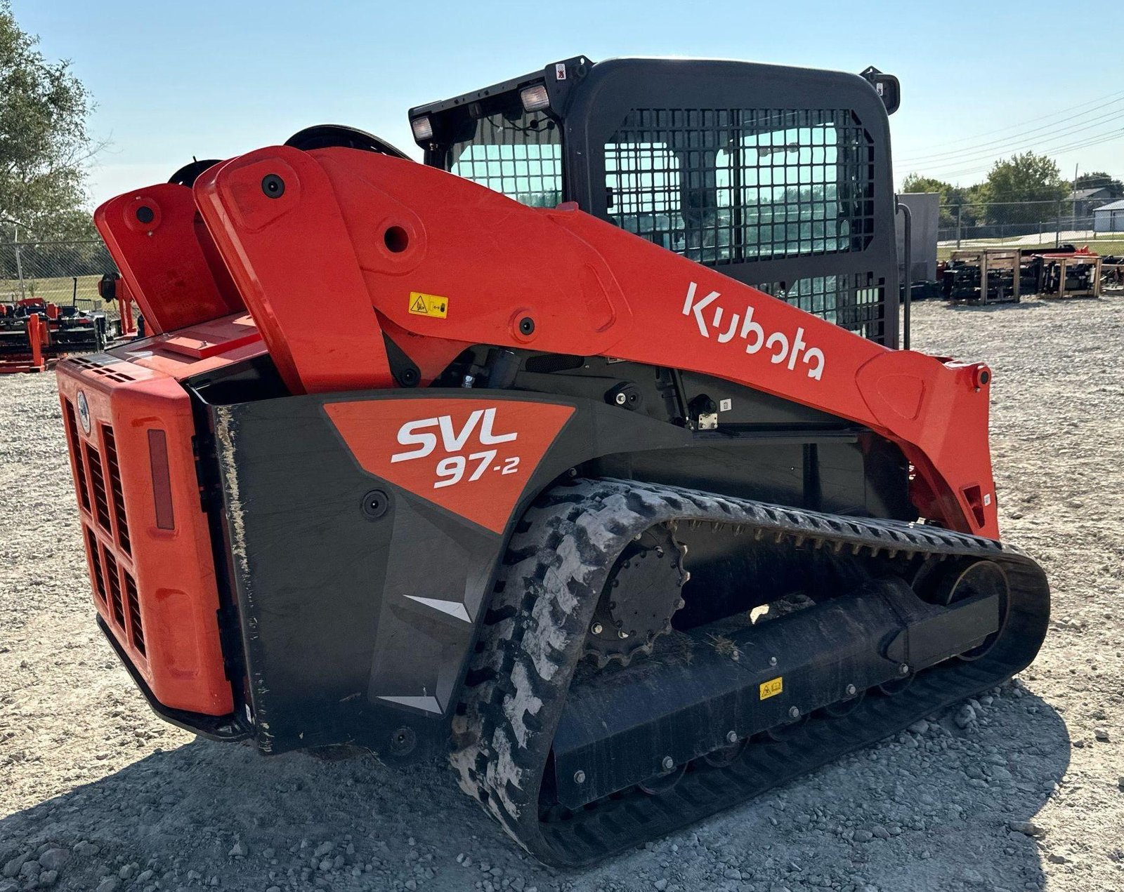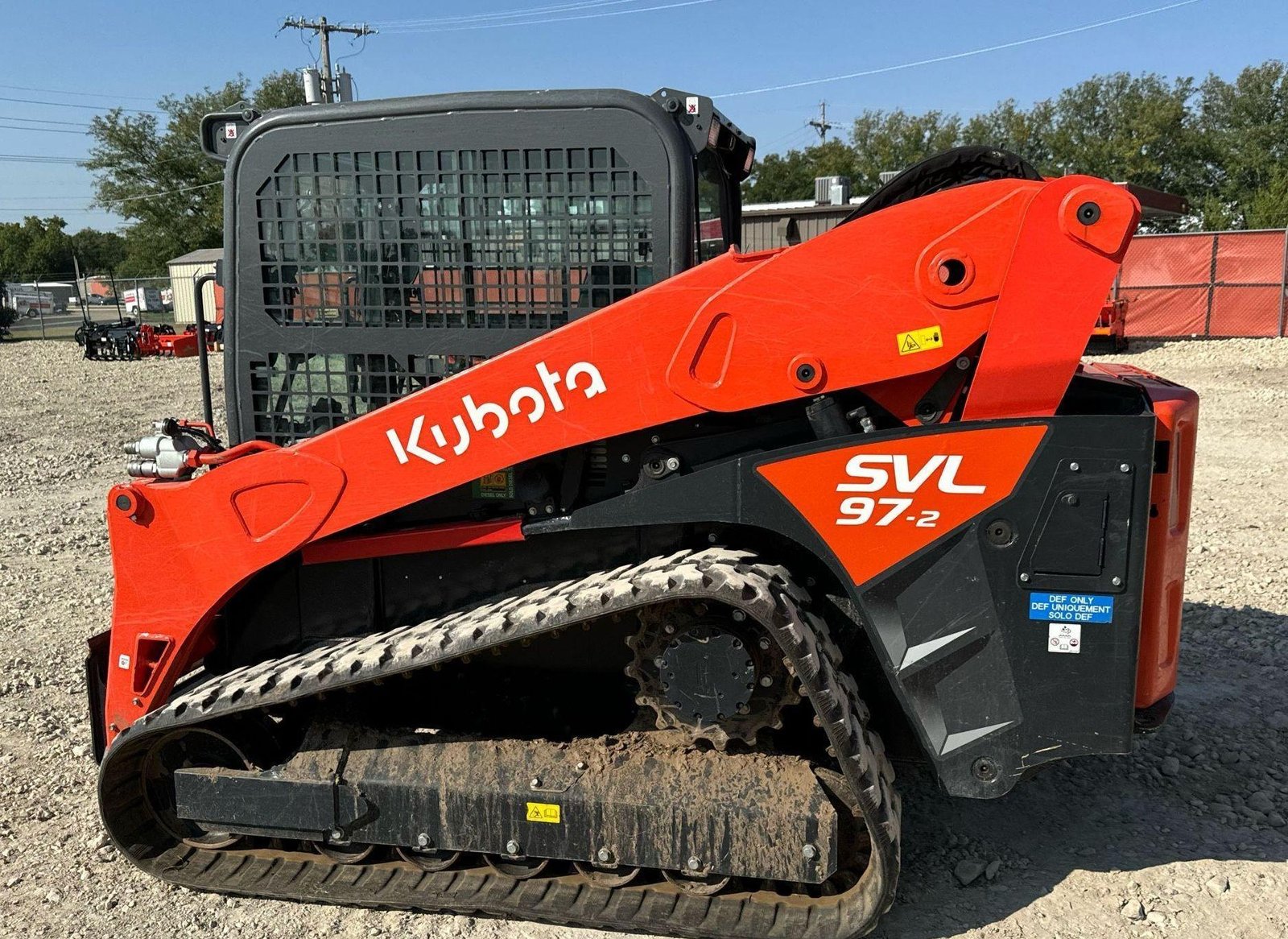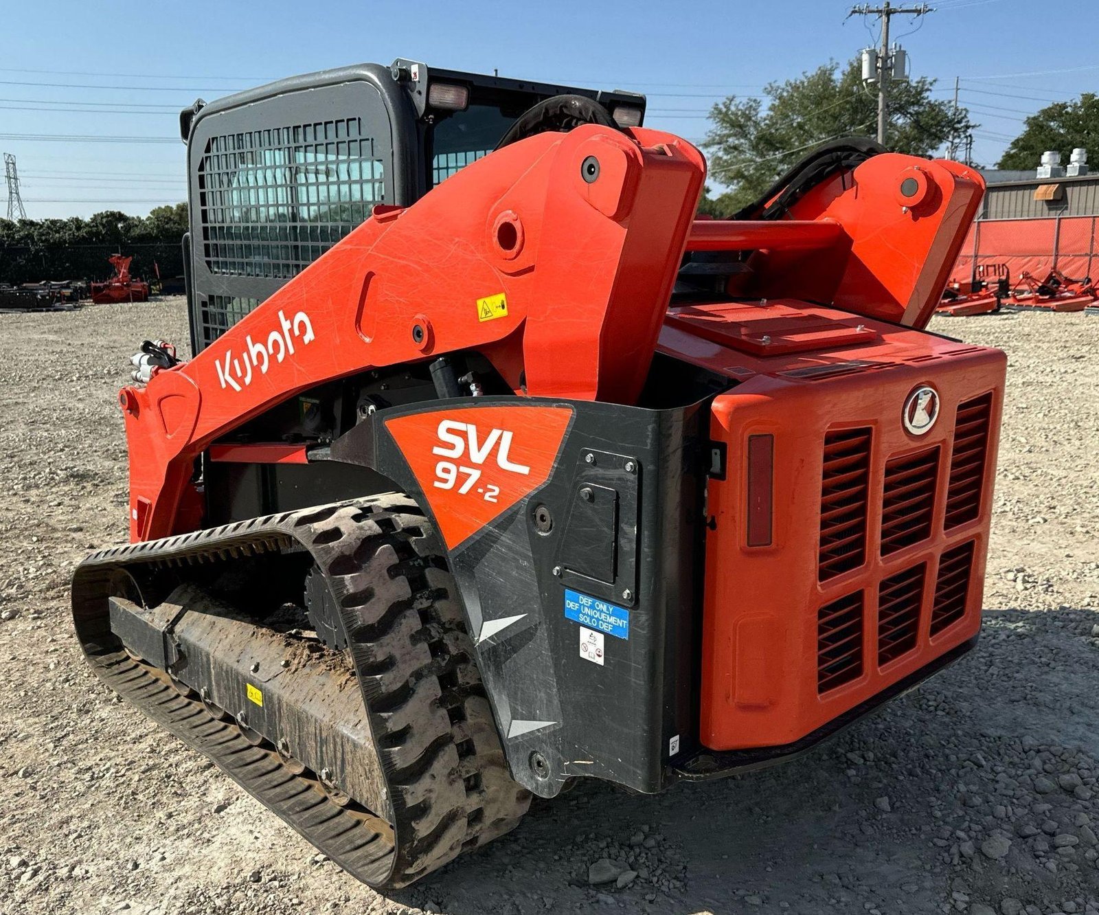 2022 Kubota SVL97-2 Tracked Skid Steer Loader — 3.8L Kubota diesel, two-speed, enclosed cab, hydraulic quick coupler.